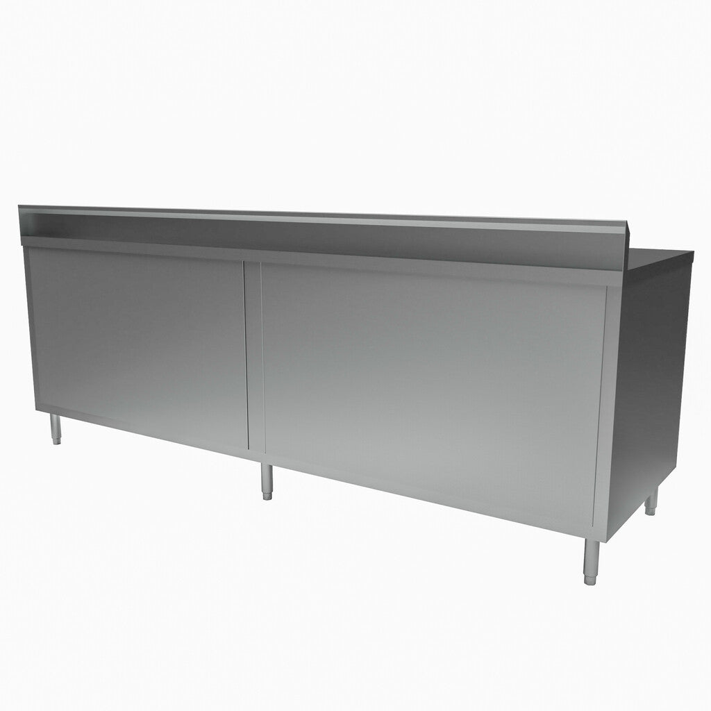 BK Resources CSTR5-3684 36" x 84" Cabinet Base Stainless Steel Top Chef Table with 5" Backsplash