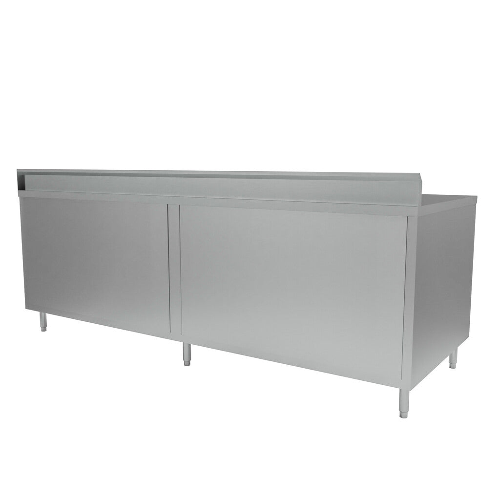 BK Resources CSTR5-3684H 36" x 84" Cabinet Base Stainless Steel Top Chef Table with Hinged Door and 5" Backsplash
